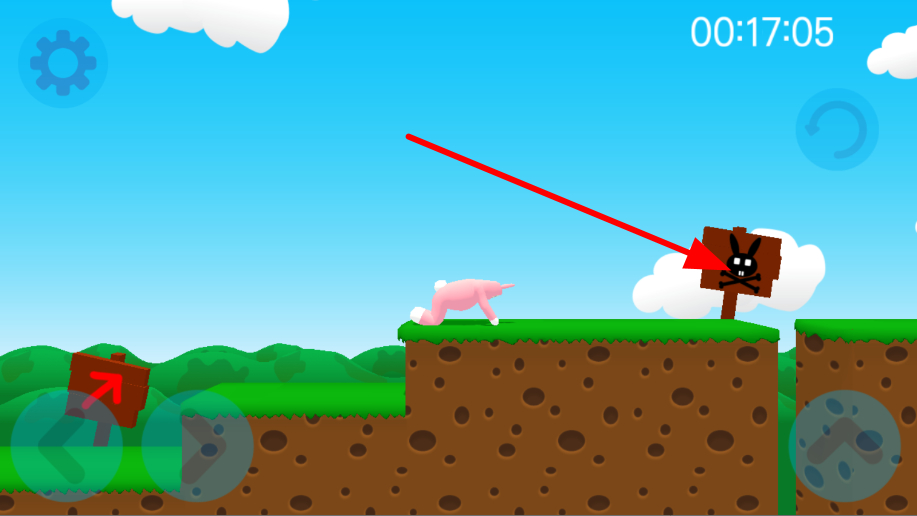 1、點擊屏幕下方的左右方向按鈕,靈活操控粉色萌兔在草地場景里前行,朝著目標位置移動。