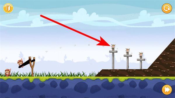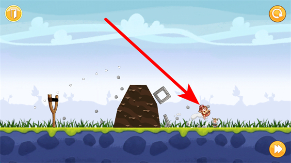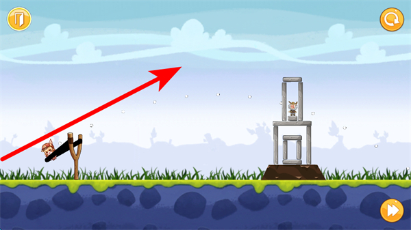 1、進(jìn)入關(guān)卡后,可看到彈弓、待彈射的角色以及目標(biāo),需觀察目標(biāo)位置與周圍環(huán)境,確定合適的彈射角度與力度。
