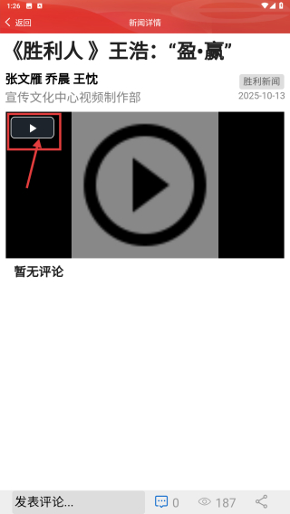 3、在新聞詳情頁(yè),點(diǎn)擊視頻播放按鈕,觀看新聞視頻內(nèi)容。