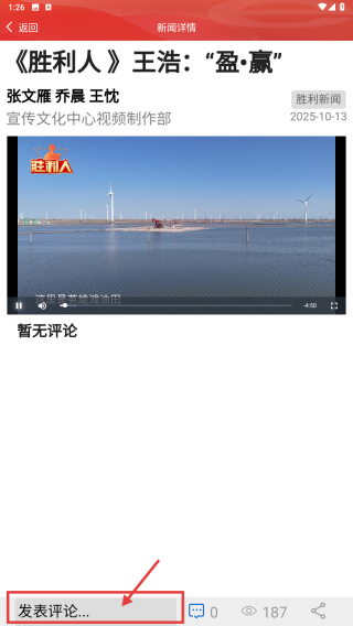 4、在頁(yè)面底部,點(diǎn)擊發(fā)表評(píng)論輸入框,可輸入評(píng)論參與互動(dòng)。