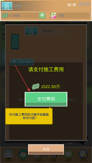 2、看到請支付施工費用提示,點擊支付費用按鈕,花費資金開始建設樓盤。