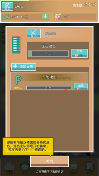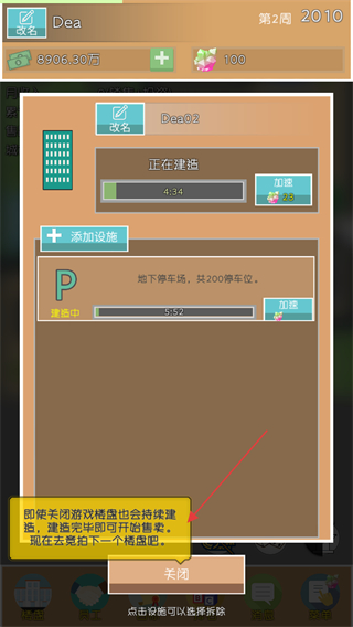 3、支付費用后,樓盤開始建設,點擊加速按鈕可加快建設進度。