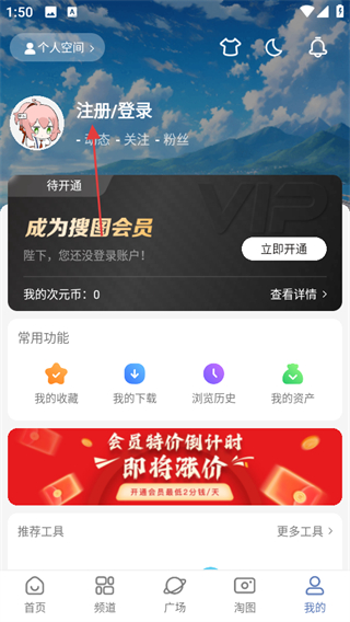 1、進(jìn)入搜圖神器,在首頁點擊底部我的,進(jìn)入個人頁面。