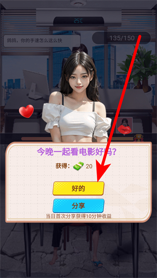 4、當有互動邀約,比如一起看電影的邀請,點擊好的可獲得獎勵,若選擇分享,當日首次分享還能獲得額外收益。
