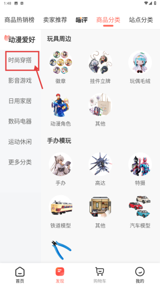 3、在商品分類中,選擇時(shí)尚穿搭欄目查看對應(yīng)商品列表。