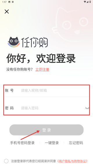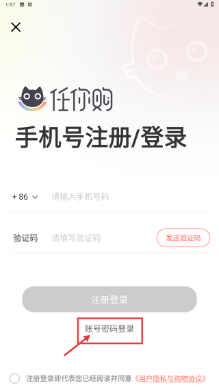 3、選擇賬號密碼登錄選項(xiàng),進(jìn)入密碼登錄模式。