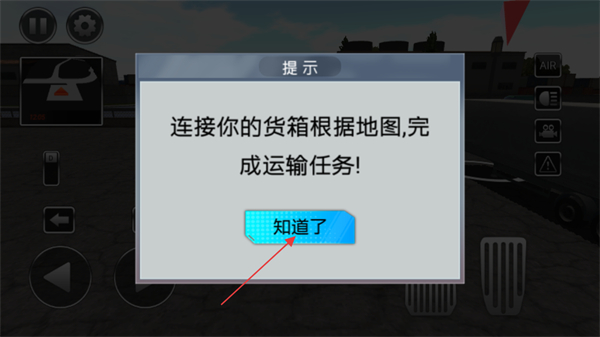 1、看到連接你的貨箱根據(jù)地圖,完成運(yùn)輸任務(wù)!提示,點(diǎn)擊知道了確認(rèn)。