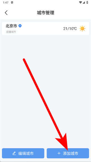 2、在城市管理頁(yè)面,點(diǎn)擊+添加城市。