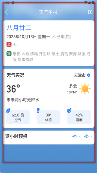 4、查看天津市的天氣午報(bào)等天氣信息。