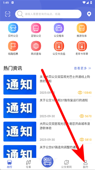1、打開大同公交線路查詢,點(diǎn)擊底部我的。