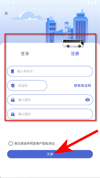 4、填寫手機(jī)號、驗(yàn)證碼等信息,勾選后,點(diǎn)擊注冊,完成注冊。