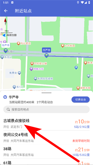 3、進(jìn)入附近站點(diǎn)頁(yè)面,選擇目標(biāo)線路。