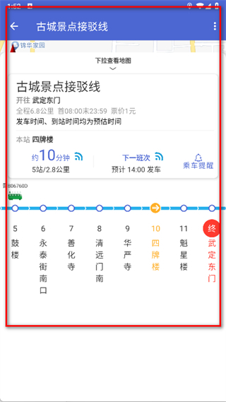 4、查看所選線路的詳細(xì)信息,包括站點(diǎn)、發(fā)車間隔等。