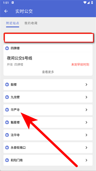 2、在實(shí)時(shí)公交頁(yè)面,選擇要查詢的站點(diǎn)。