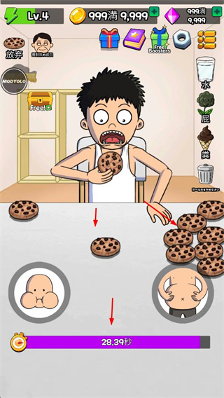 3、在游戲過程中,操控角色進(jìn)食餅干等食物,留意時(shí)間進(jìn)度,盡可能在規(guī)定時(shí)間內(nèi)完成進(jìn)食操作。