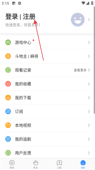 2、在個(gè)人頁(yè)面,點(diǎn)擊登錄注冊(cè),進(jìn)入登錄選擇頁(yè)面。