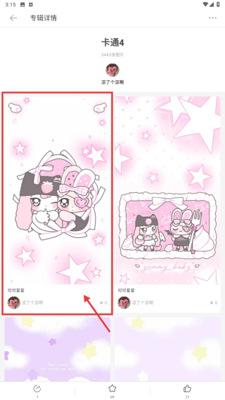 4、在專輯詳情頁(yè),查看心儀壁紙如粉色系卡通壁紙,完成壁紙瀏覽操作。