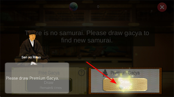2、抽取新武士,在雇傭界面點擊Draw按鈕,抽取新的武士,擴充可上陣的武士人選。