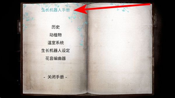 4、當(dāng)遇到難題時(shí),可查看生長機(jī)器人手冊,手冊里有歷史、動植物、溫室系統(tǒng)等多方面內(nèi)容,能從中獲取解謎的線索與知識,幫助理解場景中的機(jī)關(guān)或任務(wù)要求。