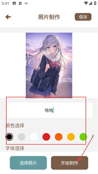 4、在照片制作頁面,輸入文字,選擇顏色,點擊開始制作,即可生成帶照片的簽名。