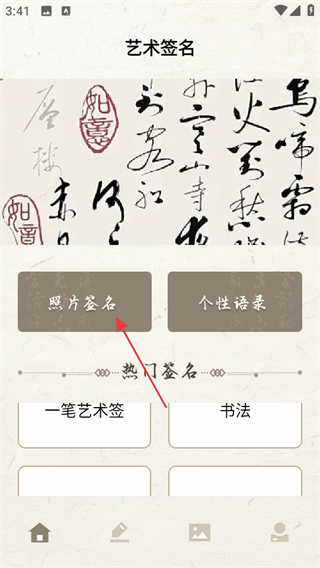 1、進入藝術簽名頁面,點擊照片簽名,進入照片制作頁面。