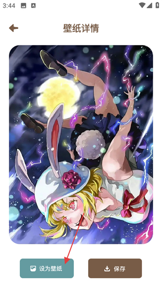 4、在壁紙?jiān)斍轫撁妫c(diǎn)擊設(shè)為壁紙,即可將該壁紙?jiān)O(shè)置為設(shè)備壁紙。