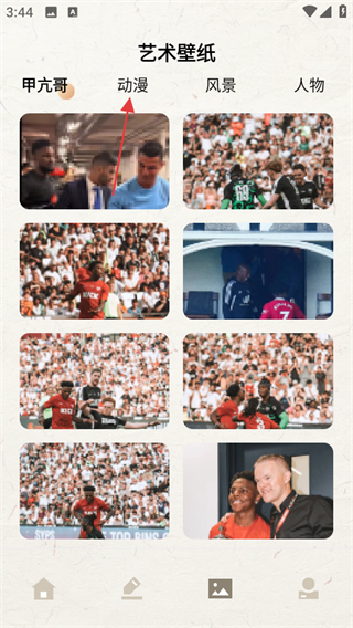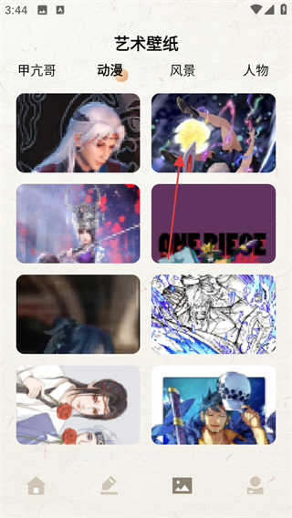 2、在藝術(shù)壁紙頁面,點(diǎn)擊動(dòng)漫分類,查看動(dòng)漫類壁紙。