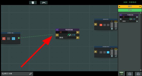 2、玩家拖動專家系統(tǒng)模塊到合適位置,進(jìn)行模塊的連接與設(shè)置,搭建基礎(chǔ)的編程邏輯框架。