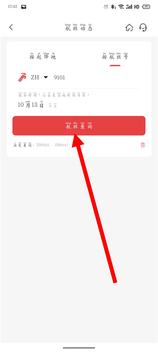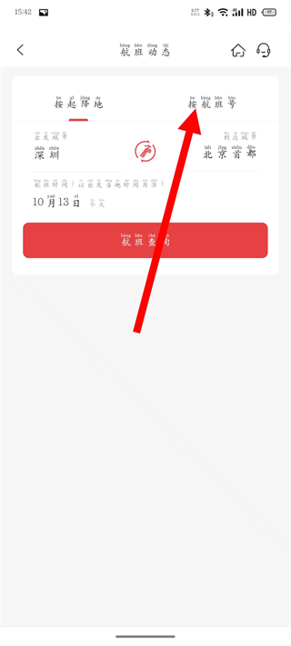 5、在航班動(dòng)態(tài)頁面選擇按航班號,輸入航班號后,點(diǎn)擊查詢查看詳情。