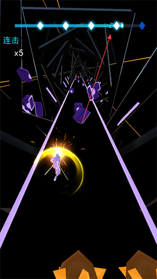 賽道中會隨機出現(xiàn)加速、變向等特殊機制,配合節(jié)奏變化的方塊,要求玩家在保持節(jié)拍感的同時快速調(diào)整操作,考驗手眼協(xié)調(diào)能力。