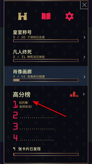 3、達成成就,在高分榜等界面查看成就進度,通過存活等方式提升排名,解鎖更多游戲成就。