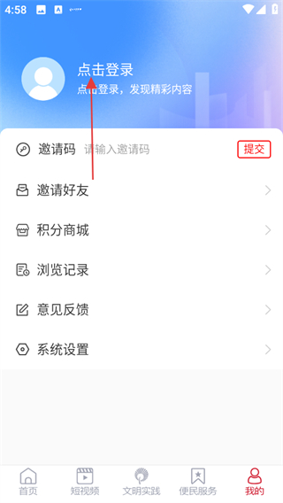 2、在個(gè)人頁面,點(diǎn)擊點(diǎn)擊登錄,進(jìn)入用戶登錄頁面。