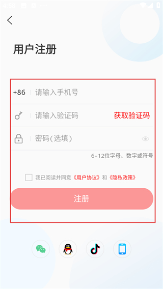 4、在用戶注冊頁面,輸入信息,勾選協(xié)議后,點(diǎn)擊注冊,完成賬號注冊。
