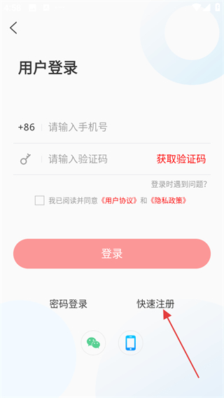 3、在用戶登錄頁面,若沒有賬號,點(diǎn)擊快速注冊,進(jìn)入用戶注冊頁面。