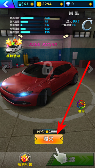 4、進入后,若有賽車可購買,根據(jù)提示消耗金幣點擊購買,獲取新賽車,提升戰(zhàn)力與駕駛體驗。