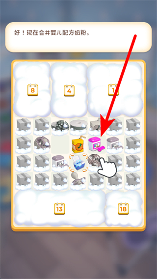 2、參與物品合并任務,比如合并嬰兒配方奶粉,通過合并操作獲取資源,為寶寶的生活提供保障。