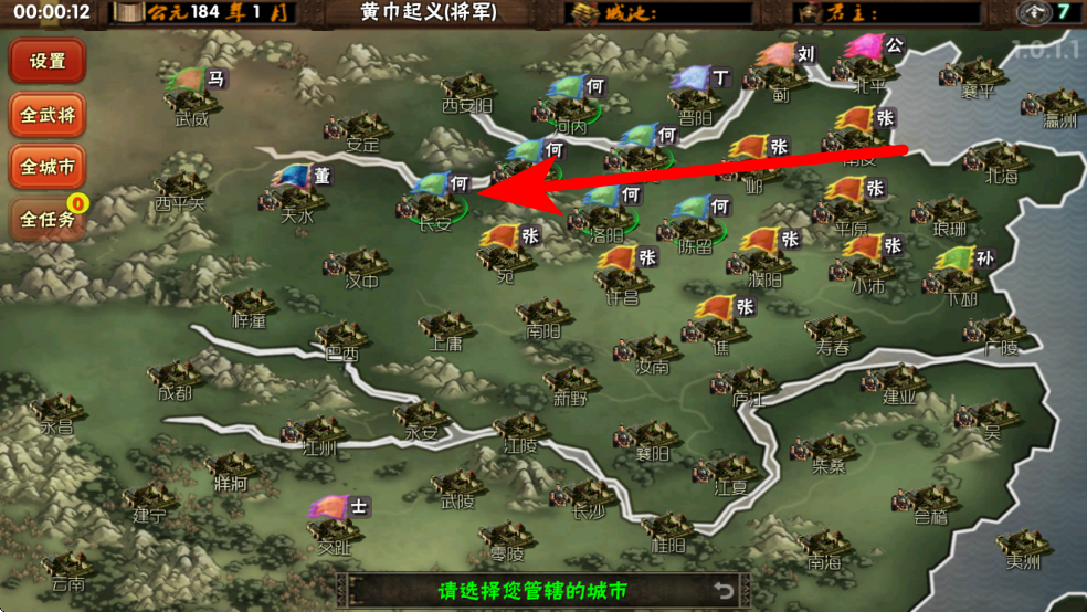 2、選擇管轄的城市,進(jìn)入城市界面后,可查看君主、太守等信息,以及產(chǎn)業(yè)、土地、人口等城市數(shù)據(jù),了解城市基本情況。