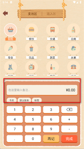 3、在輸入框中,填寫備注并輸入消費金額。