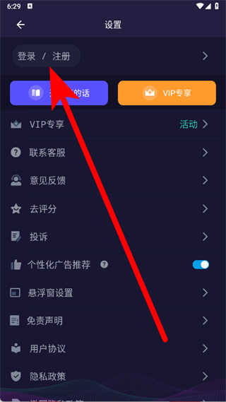 3、在設(shè)置頁面,點擊登錄注冊。