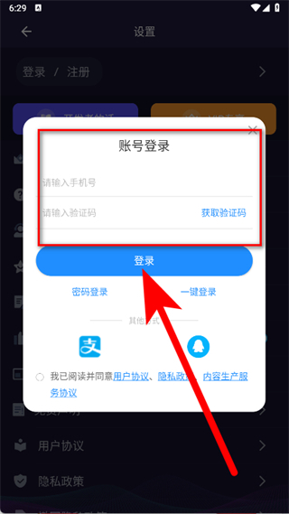 4、輸入手機號和驗證碼,勾選后,點擊登錄,完成注冊。