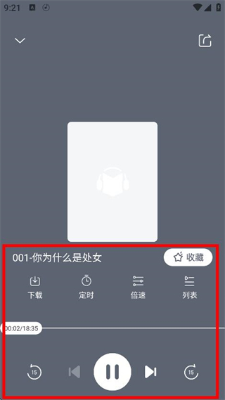 4、在章節(jié)播放頁面,可進(jìn)行播放、暫停等操作,收聽章節(jié)內(nèi)容。
