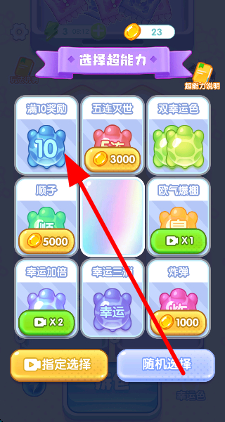 2、在超能力選擇界面,挑選合適的超能力,像滿10獎(jiǎng)勵(lì)等,助力在游戲中更順利地收集烏龜。