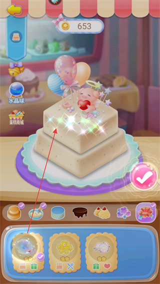 3、完成裝飾后,點(diǎn)擊右下角的對(duì)勾按鈕,確認(rèn)蛋糕制作完成。