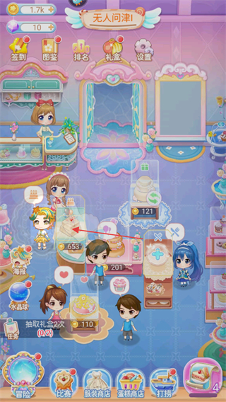 4、回到主界面,將制作好的蛋糕售賣,吸引顧客如不同造型的小魔仙和顧客,賺取金幣,完成關(guān)卡目標(biāo)。