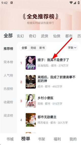 2、在榜單頁(yè)面,點(diǎn)擊要閱讀的小說(shuō),進(jìn)入頁(yè)面。