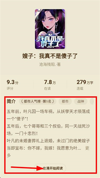 3、隨后在小說(shuō)詳情頁(yè)面,左滑開(kāi)始閱讀小說(shuō)。