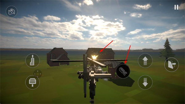 2、操作直升機(jī)時,使用攻擊按鈕發(fā)射彈藥,對建筑造成傷害,逐步摧毀目標(biāo)。