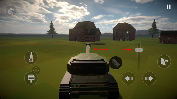 3、還可操控坦克,通過方向按鈕移動坦克,瞄準(zhǔn)brick建筑。