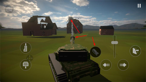 4、操作坦克時,使用攻擊按鈕發(fā)射炮彈,對建筑造成大范圍破壞,推進(jìn)游戲進(jìn)程。