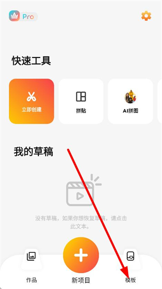 1、在軟件首頁,點擊底部的模板,進入模板選擇頁面。